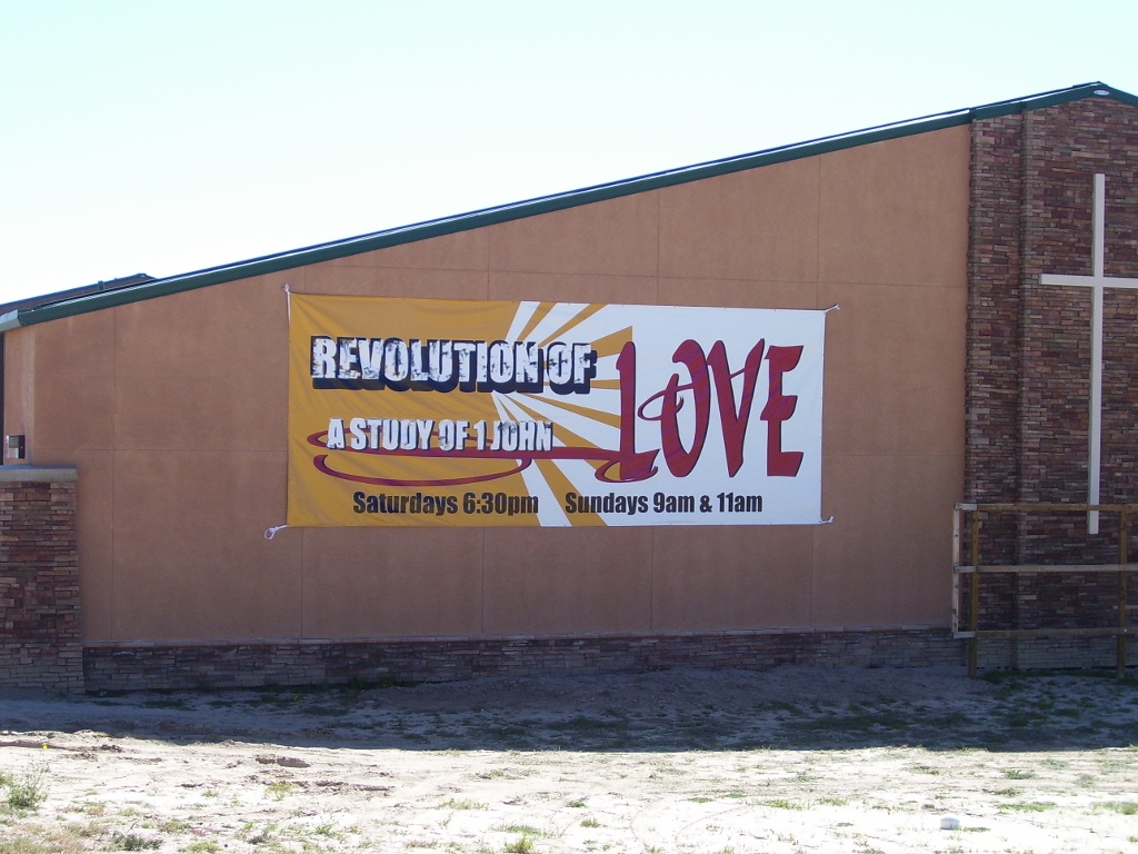 We use at a minimum of a 13oz Banner Material. Why? 13oz material is close to the same price as 8oz and 10oz materials that are only designed for interior use. With the 13oz Banner material you can use for interior or exterior uses. You also have a choice of Matte and Gloss finishes. Gloss is best for outdoor installation and Matte is best used if you believe anyone will be taking photos with the Banner and will help with camera flashes or interior lighting.